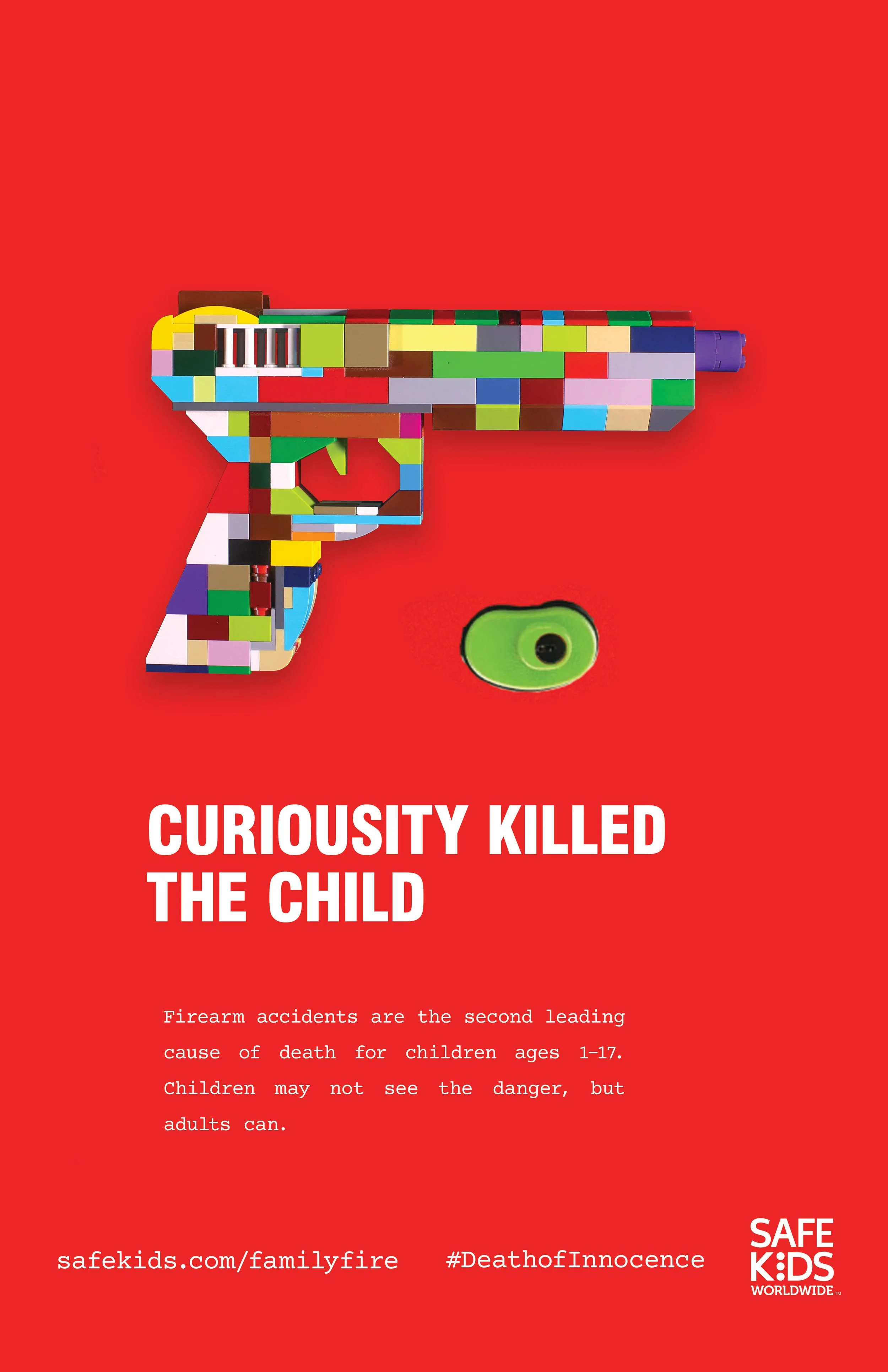 I manually constructed a handgun out of some Lego and then staged & photographed the gun. The purpose of which to create a visual connection that showcases the innocent perspective of a child, who doesn’t know.